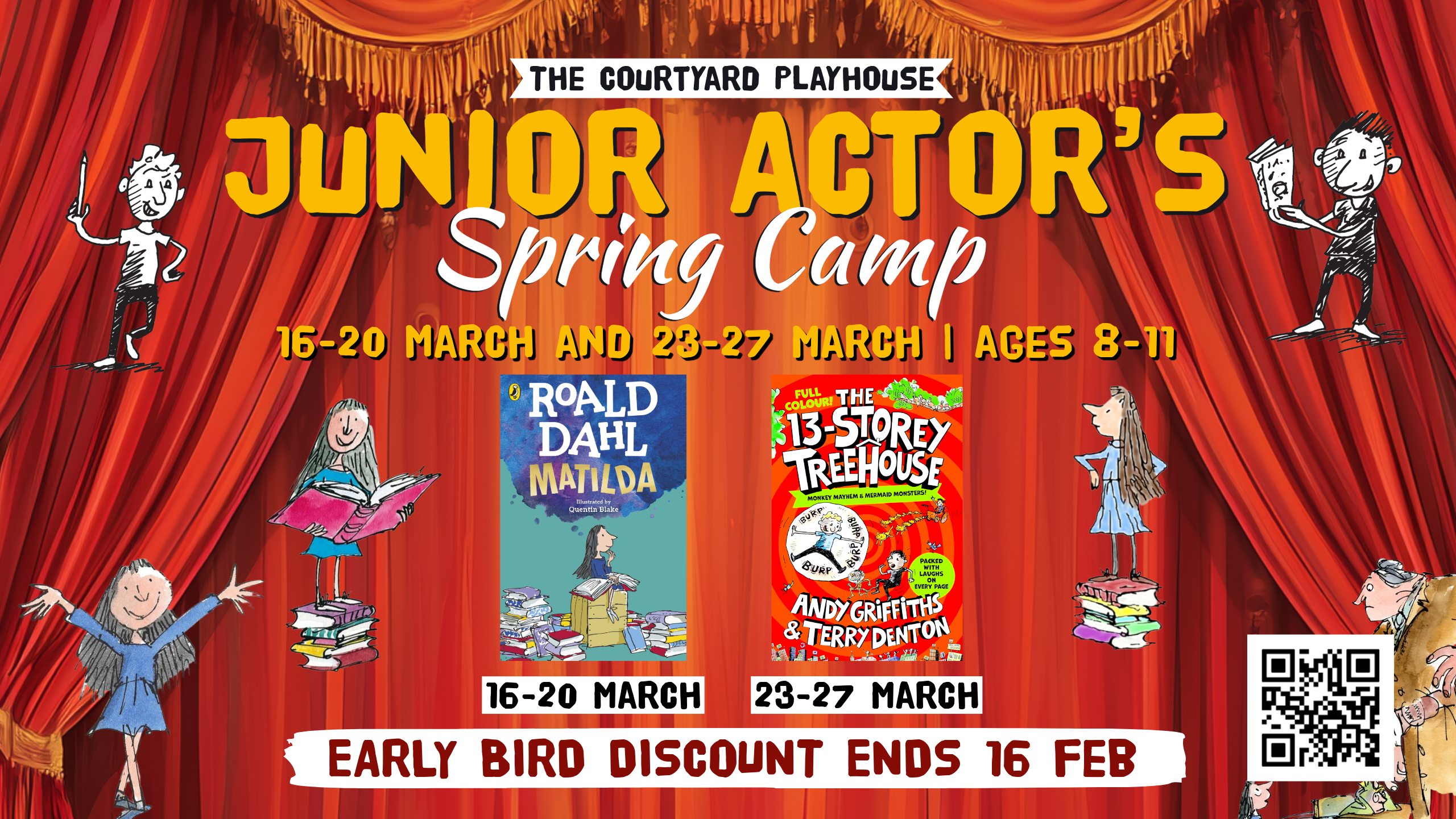Sign your child up for our Acting Spring Camp and let them explore the themes of courage, fairness and finding your voice through storytelling and theatre with Roald Dahl’s Matilda and Andy Griffiths & Terry Denton’s The Thirteen Story Treehouse as inspiration! It will be a fun week filled with self-expression and spontaneity, where young performers develop valuable life skills that help build confidence and overcome anxieties.